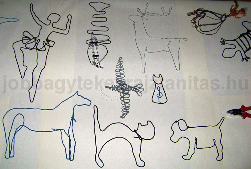 drótszobrok, használati tárgyak